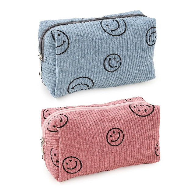 2pcs Soft Corduroy Cosmetic Bag For Travel -