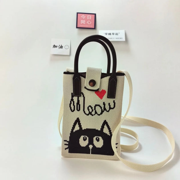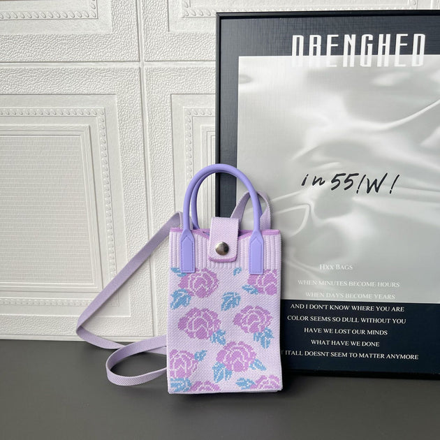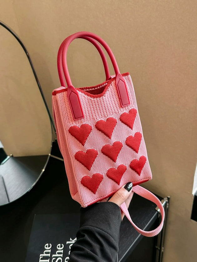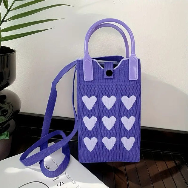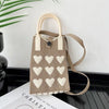 Cell Phone Crossbody Bag for Women Little Crochet Pouch Tote Handbag with Heart Pattern