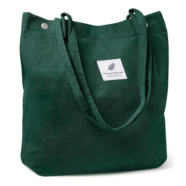 Corduroy Tote Bag for Women Shoulder Bag with Inner Pocket for Work Beach Travel and Shopping Grocery -