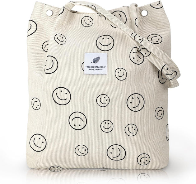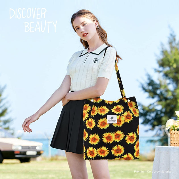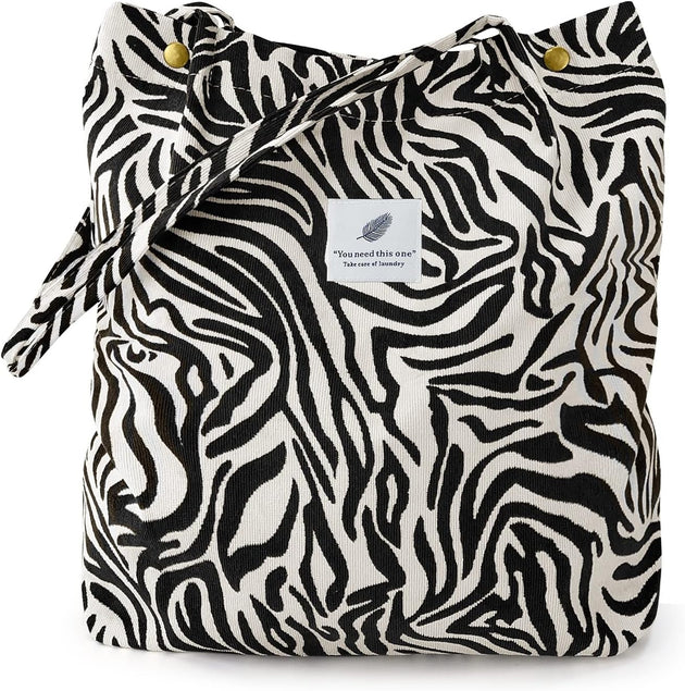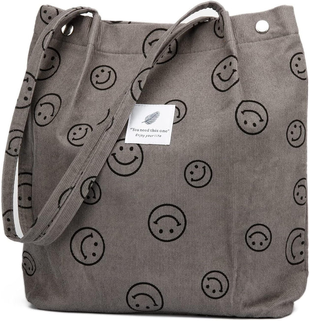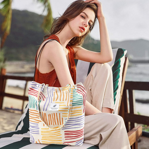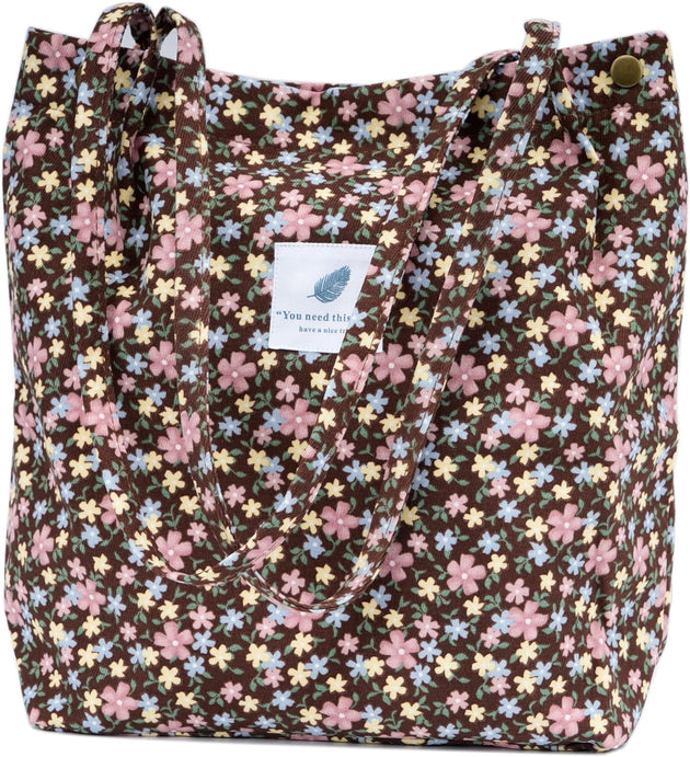 Corduroy Tote Bag for Women Shoulder Bag with Inner Pocket for Work Beach Travel and Shopping Grocery