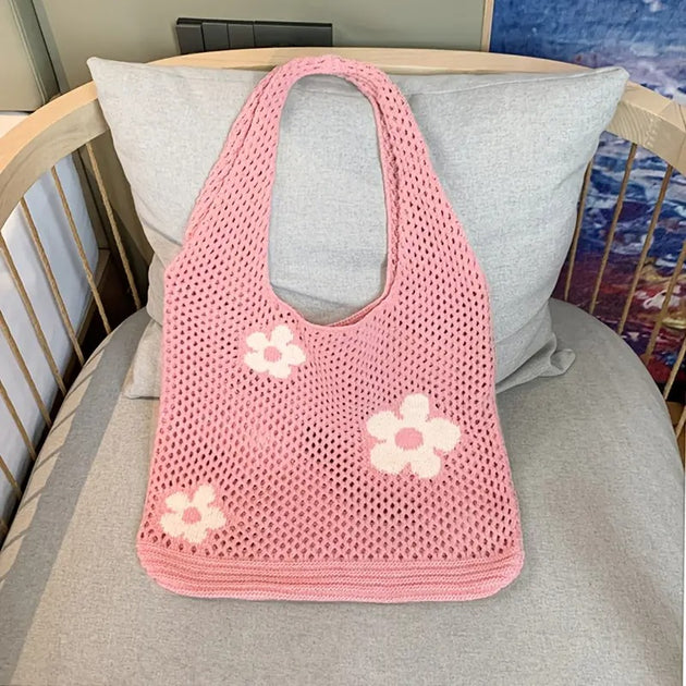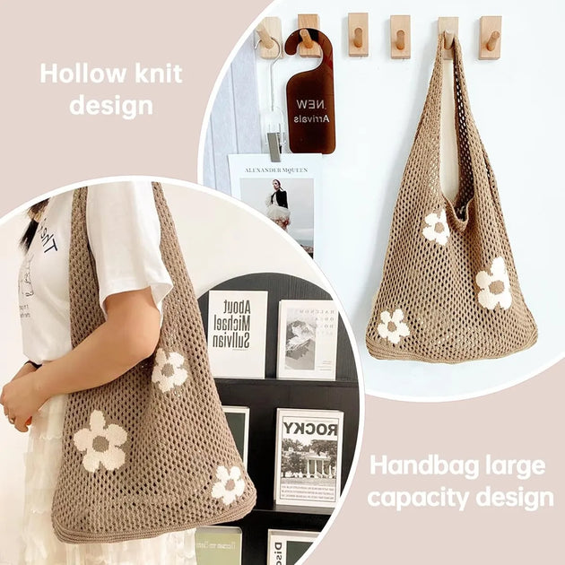 Crochet Tote Bag, Women Summer Aesthetic Mesh Beach Bags