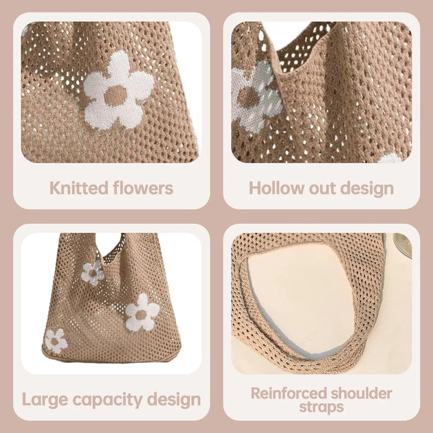 Crochet Tote Bag, Women Summer Aesthetic Mesh Beach Bags -