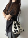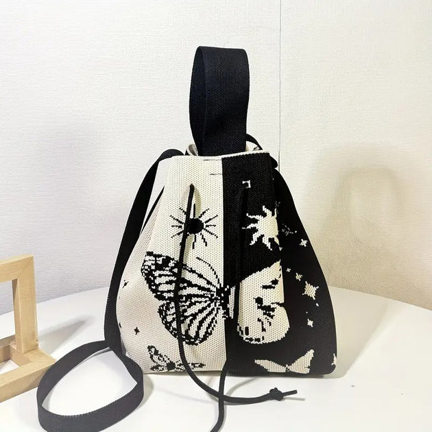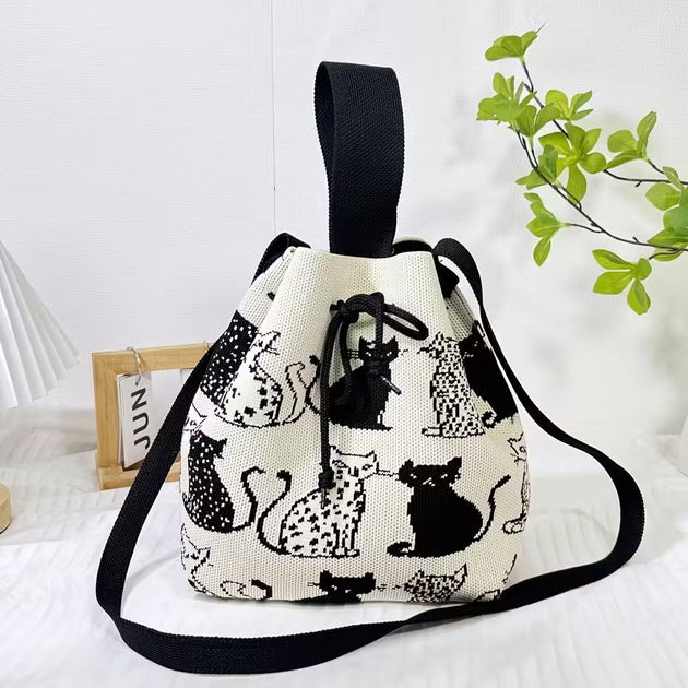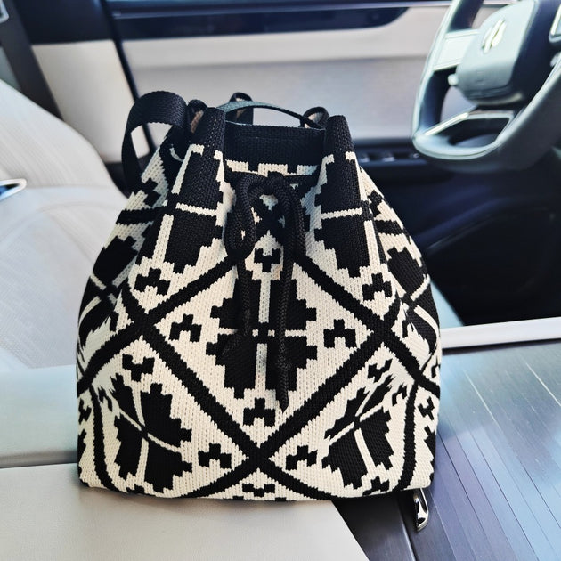 Korean Style Cute Geometric Pattern Knitted Drawstring Bucket Crossbody Bag